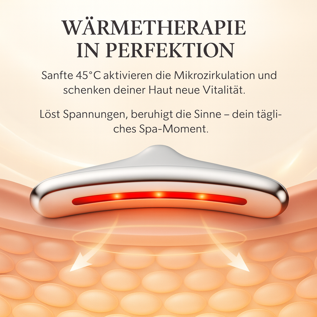 Sie fragen sich vielleicht, ob dieses kompakte Gerät wirklich einen spürbaren Unterschied machen kann. Der V-Lift Pro funktioniert, weil er nicht nur eine, sondern fünf bewährte professionelle Technologien kombiniert, die tiefer wirken als jede Creme. Die Rotlicht Therapie (630 nm) stimuliert nachweislich die Kollagenproduktion auf zellulärer Ebene. Gleichzeitig liefert der EMS-Mikrostrom ein gezieltes Muskeltraining für einen straffenden Lifting-Effekt. Die Ion-Pull Technologie zieht Unreinheiten wie ein Magnet aus den Poren und die Wärme-Therapie mit ca. 45∘C optimiert die Durchblutung und die Aufnahme Ihrer Pflegeprodukte. Abgerundet durch die Gesichtsmassage zur Reduktion von Schwellungen, liefert der V-Lift Pro wissenschaftlich fundierte Ergebnisse, die Sie spüren und sehen können – und das bequem von zu Hause aus.